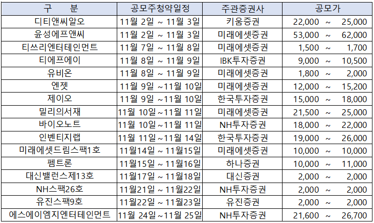 [ 11월 공모주 청약 중복 일정 - 2 ]