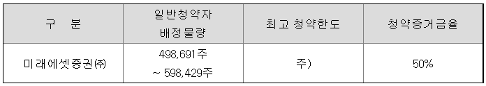 미래에세증권의 일반 청약자 배정 주식 수는 498,691주 ~ 598,429주이고, 일반 청약자의 최고 청약 한도는 일반 그룹 기준 24,500주 ~ 29,500주입니다.
