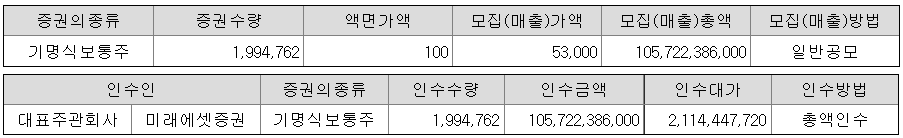 - 공모청약일 : 11월 2일(수) ~ 11월 3일(목)
