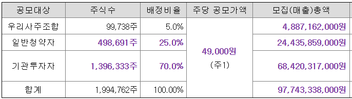공모희망가격 상단 이상 초과 신청 비율은 7.45%였던데 비해, 49,000원 미만 신청한 주식수 비율이 36.81%에 달해 공모가를 하향 조정토록 한 것으로 보입니다.