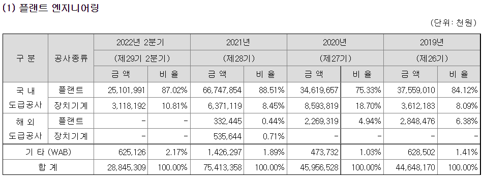 회사는 다년간의 공사 수행 경험을 통해 기술력과 노우하우를 가지고 있다고 설명하고 있지만, 중소 플랜트엔진니어링 업체로서의 한계는 분명해 보입니다.