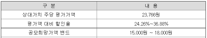 희망공모가격은 15,000원 ~ 18,000원이고 한국투자증권에서 청약 가능합니다.