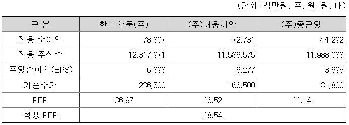 <유사회사의 평균 PER 산정>