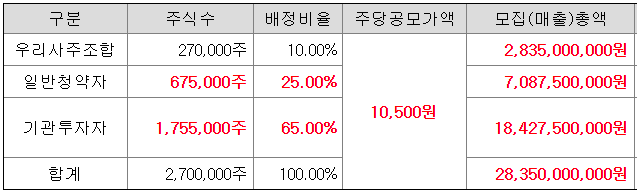 - 청약일 : 11월 8일(화) ~ 11월 9일(수)
