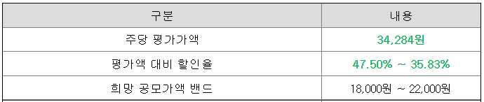 희망 공모가격은 18,000원 ~ 22,000원이고, NH투자증권, 한국투자증권, 삼성증권, 신한투자증권 등 4개 증권사에서 청약 가능합니다.