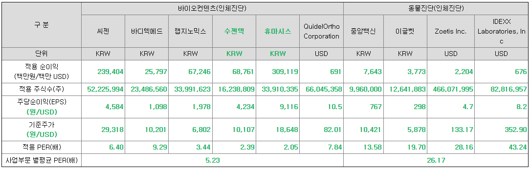하지만 동물진단 부분만으로 시가 총액 2조의 회사라고 하기에는 역부족인 것으로 보입니다.