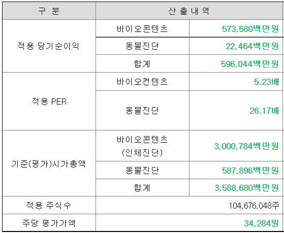 위의 표를 보면 바이오컨텐츠 부분의 매출과 수익성이 매우 높은 것을 알 수 있습니다.