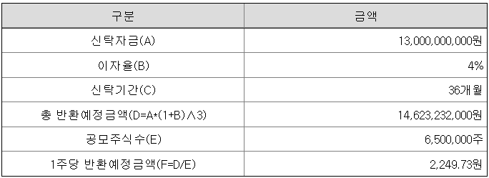 [1주당 반환 예정 금액]