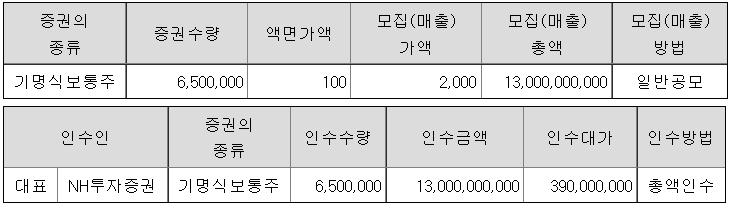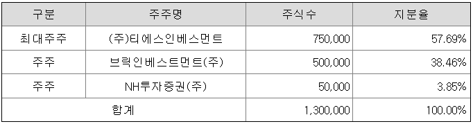 동사는 전환사채 7억원을 발행하였는데, NH투자증권이 이를 100% 인수하여 (주)티에스인베스트먼트와 NH투자증권이 공동 최대주주가 되었습니다.