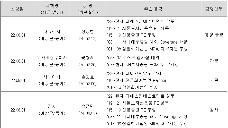 동사는 금융 관련 경력을 보유한 인력 및 업계 전문가 등으로 경영진을 구성하고 있습니다.