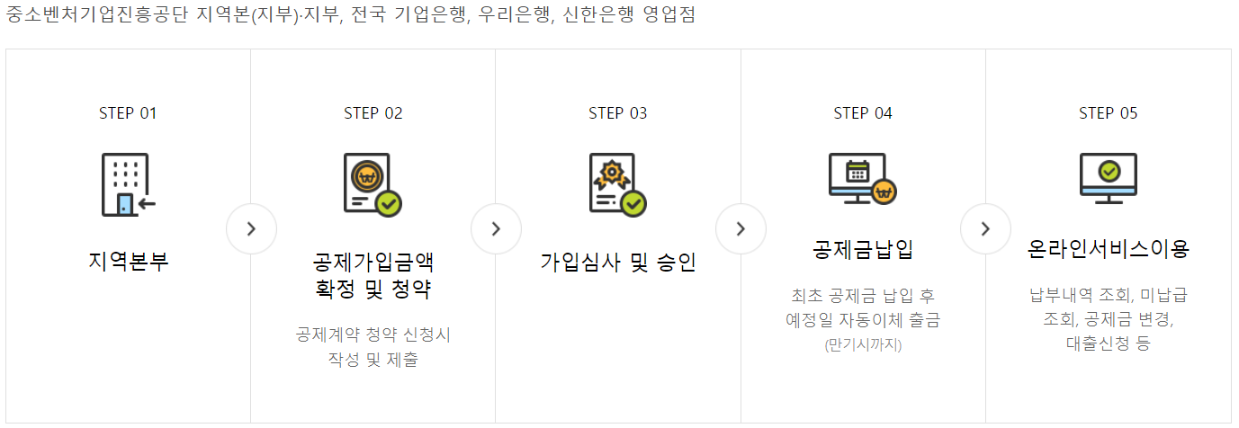 납입은 사전에 설정한 중소기업명의 시중은행 계좌에서 매월 정해진 날자(5일, 15일, 25일 중 중소기업이 선택)에 자동 이체되는 방식입니다.