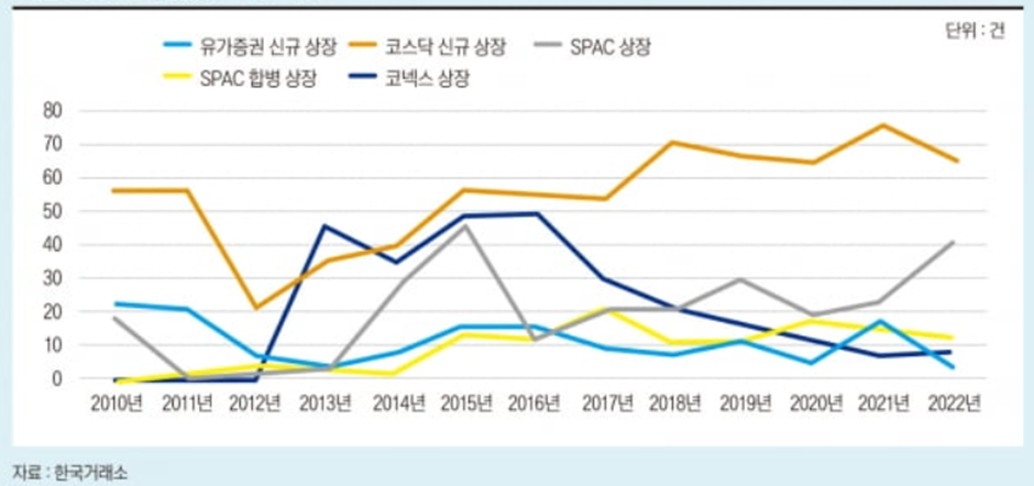 연도별 IPO건수 ,출처 : 한국거래소