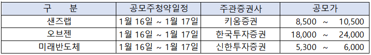 [ 2023년 1월 공모주 청약 중복 일정 - 1 ]