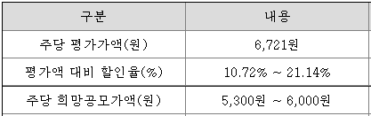 희망 공모가격은 5,300원 ~ 6,000원이고 신한투자증권에서 청약 가능합니다.