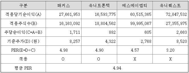 <유사회사의 평균 PER 산정>