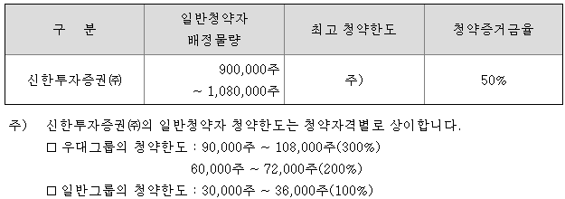 - 청약 가능 증권사 : 신한투자증권