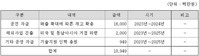 [공모금액 사용계획]