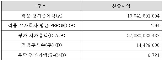 <유사회사의 평균 PER 산정>