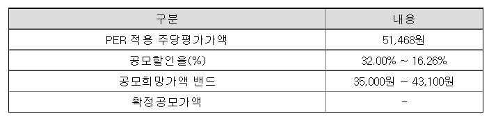 공모 희망 가격은 35,000원 ~ 43,100원이고 삼성증권과 미래에셋증권에서 청약 가능합니다.