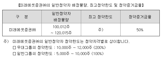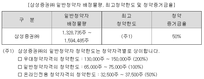 - 청약 가능 증권사 : 삼성증권, 미래에셋증권