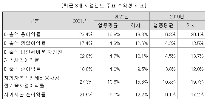 회사는 원자력 부문의 계획 예바 정비 공사 진행이 부진했던 2020년을 제외하고는 지속적인 매출 성장을 기록하고 있으며, 영업이익률도 높은 수준을 나타내고 있습니다.