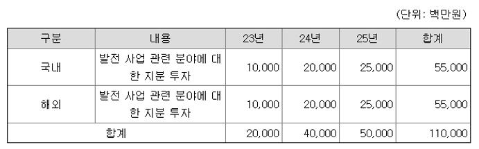 공모 자금을 이용한 국내외 발전 사업 분야 투자 계획이 있는데, 옥석을 잘 가려서 투자해야 하는 과제로 남아 있습니다.