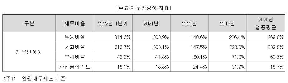 회사는 우수한 현금흐름과 매출 성장을 바탕으로 안정적인 부채비율과 높은 유동비율을 기록하고 있습니다.
