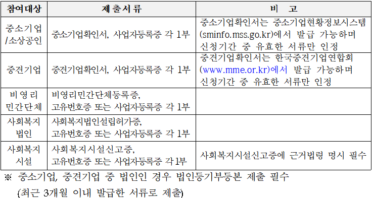 ※ 대표 및 법인등기부등본상 임원은 참여 제외 (단, 법인이 아닌 중소기업, 비영리민간단체는 대표자만 참여 제외)
