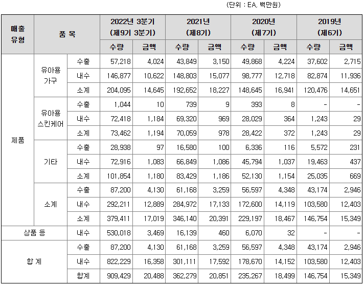 국내 유아용 제품 시장 성장에는 어느 정도 한계가 있어 보이는데, 이를 극복하기 위한 제품 다양화와 수출 증대 전략이 어느 정도 성과를 가져올 수 있을지 궁금한 대목입니다.