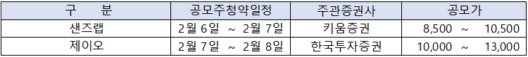 2월 공모주 중에서 눈에 띄는 업체는 오아시스와 제이오입니다.