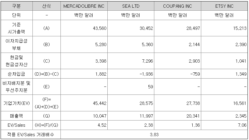 < 유사회사의 EV/Sales배수 산정 >