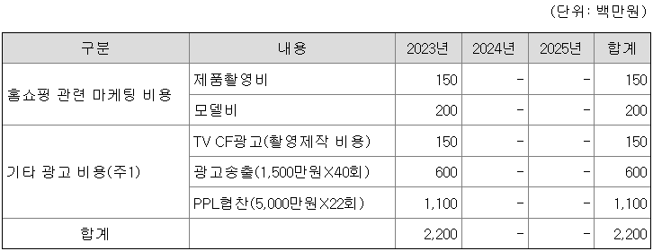 <홈쇼핑마케팅비용과 기타 광고비 내역>