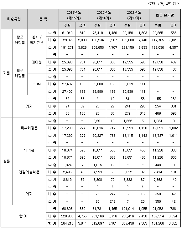 탈모 관리 및 피부 관리용 기능성화장품과 관련 기기등을 생산 판매하는 회사의 코스닥 상장 도전입니다.