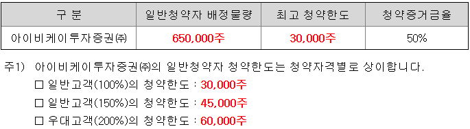 - 청약 가능 증권사 : IBK투자증권