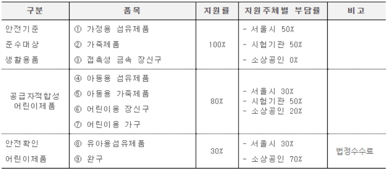 한국건설생활환경시험연구원은 서울시와 함께 소상공인 경쟁력 제고 및 소비자 안전 확보를 위해 어린이 제품과 3가지 생활용품에 대해 소상공인 안전검사 지원사업을 추진하고 있습니다.