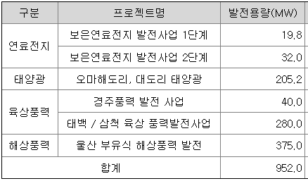 증권신고서 제출일 현재 동사가 지분 참여하여 진행중인 신제생에너지 발전 프로젝트 개발 투자 사업은 다음과 같습니다.