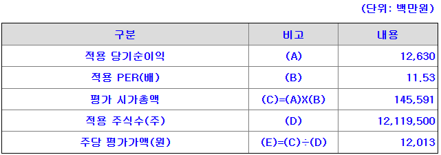 회사의 주당 평가가액은 2022년 3분기말 직전 4개 분기 순이익에 유사회사의 평균 PER 배수를 곱하여 회사가치를 정하고 ,주식 수로 나누어 산출한 것입니다.