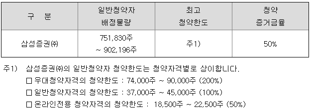 - 청약 가능 증권사 : 삼성증권