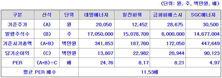 <유사회사의 평균 PER산정>