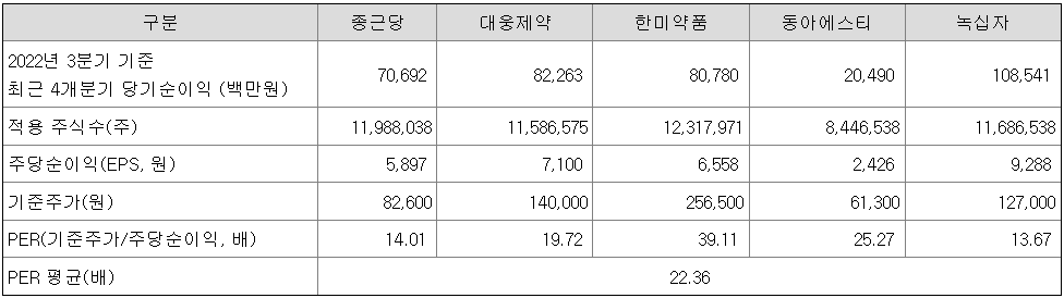 희망 공모가 산정 시 현재 실적이 아니라 2024년과 2025년의 추정 순이익을 시용한 점과 유사회사로 선정된 회사들이 국내 유수의 제약회사들로 구성되어 있어 공모가격이 높게 책정된 것이 아닌지 걱정스러운 측면이 있습니다.