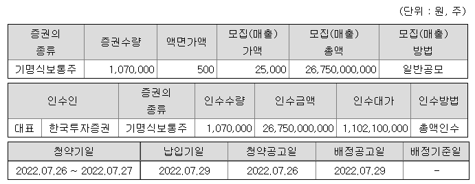 - 공모청약일 : 7월 26일(화) ~ 7월 27일 (수)