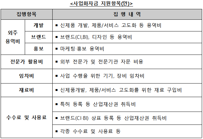 - 제품 라인업 확대 및 구체화, 브랜딩·디자인 등에 활용할 수 있는 사업화 자금을 최대 1억원까지 지원