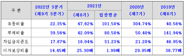 - 2022년 3분기말 기준