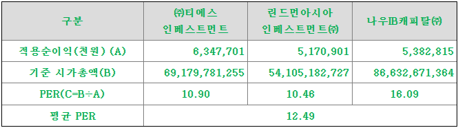 <유사회사의 평균 PER산정>