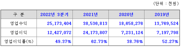 - 2022년 3분기말 기준
