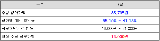 공모가격을 희망 공모가 하단 대비 3,000원 내린 것이 일반 청약자들에게 어떤 영향을 미칠지 궁금해지는 대목입니다.