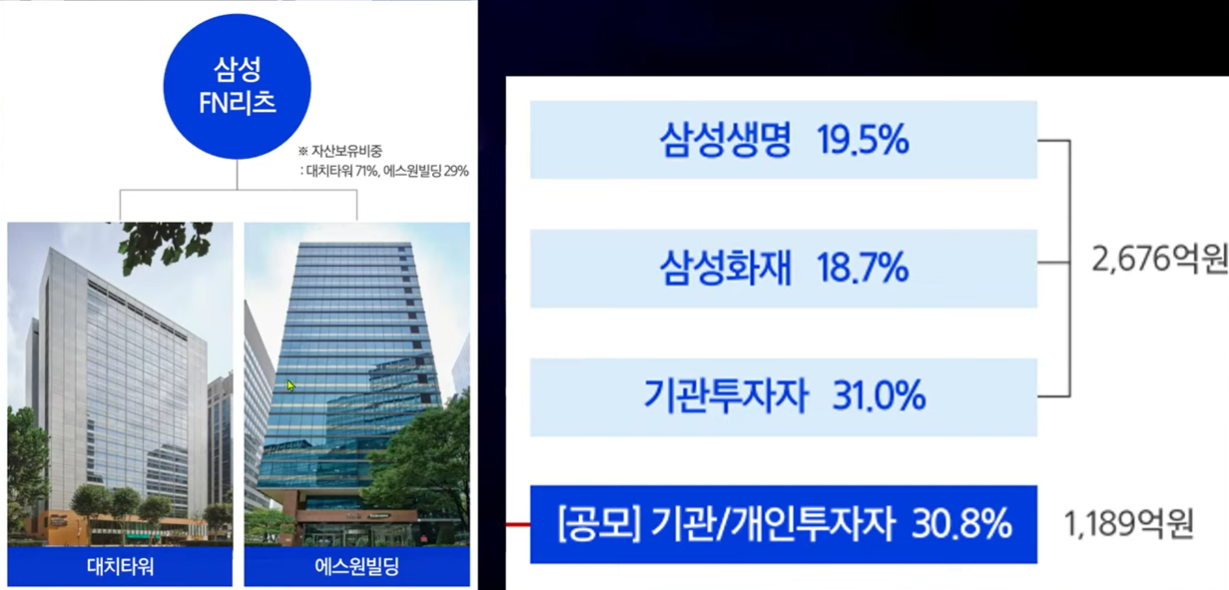 금년 들어 한화리츠에 있어 두 번째로 공모를 진행하는 삼성그룹의 리츠로 한화리츠보다는 조건이 좋다고 생각됩니다만, 기관투자자들의 호응을 이끌어내지는 못했습니다.