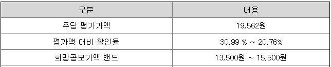희망 공모가격은 13,500원 ~ 15,500원이고 한국투자증권에서 청약 가능합니다.