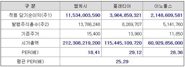<유사회사의 평균 PER 산정>