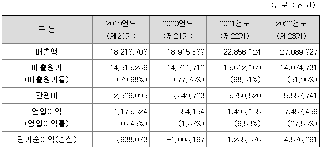 2020년부터 영업활동 현금흐름 개선에 따라 장단기 차입금을 지속적으로 상환하여 2022년 말 차입금은 거의 제로 수준입니다. 또 2022년 11월 상환전환우선주가 보통주로 전환됨에 따라 부채비율이 크게 개선되어 업종 평균을 하회하고 있습니다.